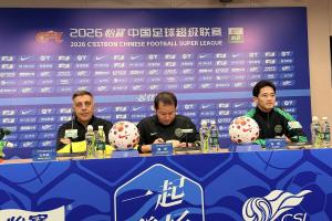 体育资讯04月16日讯 中超第6轮浙江vs北京国安赛前,浙江队主帅阿洛伊西携队员钱杰给出席赛前发布会。