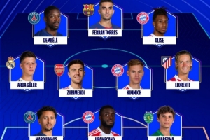 体育资讯4月16日讯 欧冠1/4决赛次回合已全部赛罢,欧冠官方评出了本周最佳阵容,其中登贝莱、奥利塞、费兰·托雷斯领衔锋线。