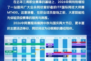 体育资讯4月17日讯 中网官方发布2026年中网赛历,2026年中网赛程将横跨中秋与国庆两大节日。